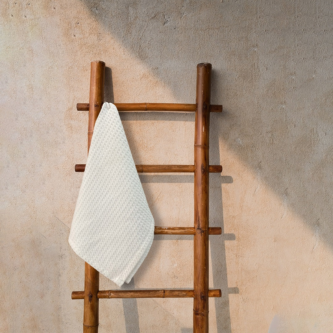 White waffle hand towel is incredibly lightweight and breathable with waffle texture which makes for a refreshingly new drying experience. Its trim silhouette also takes up less storage space.