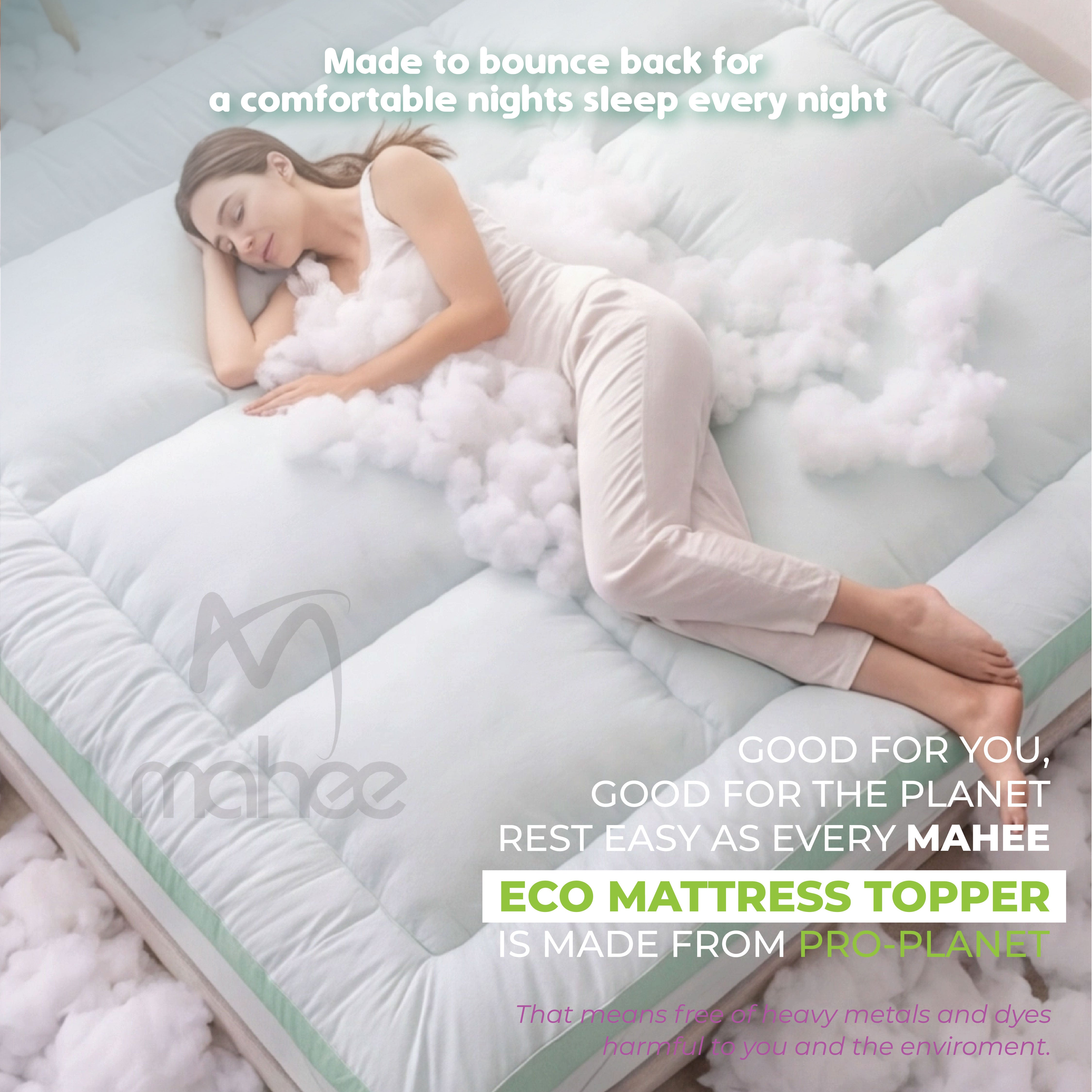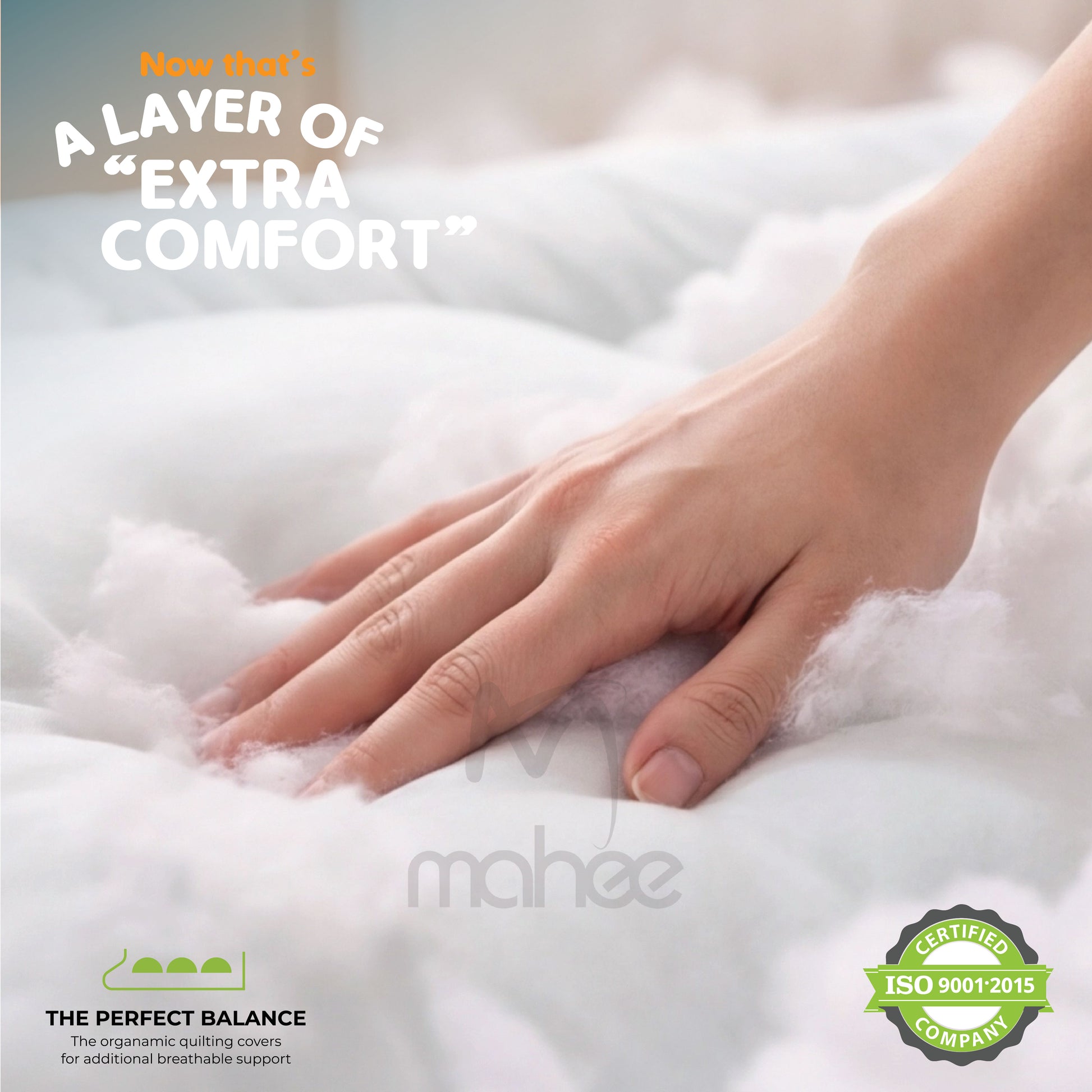 The Extra Thick Mattress Topper increases the filling of the mattress topper by 50%. Compared with other brands, it's more soft and cozy. The extra padding also supports your body better, spreading your weight evenly across the bed and awakening with less back pain.