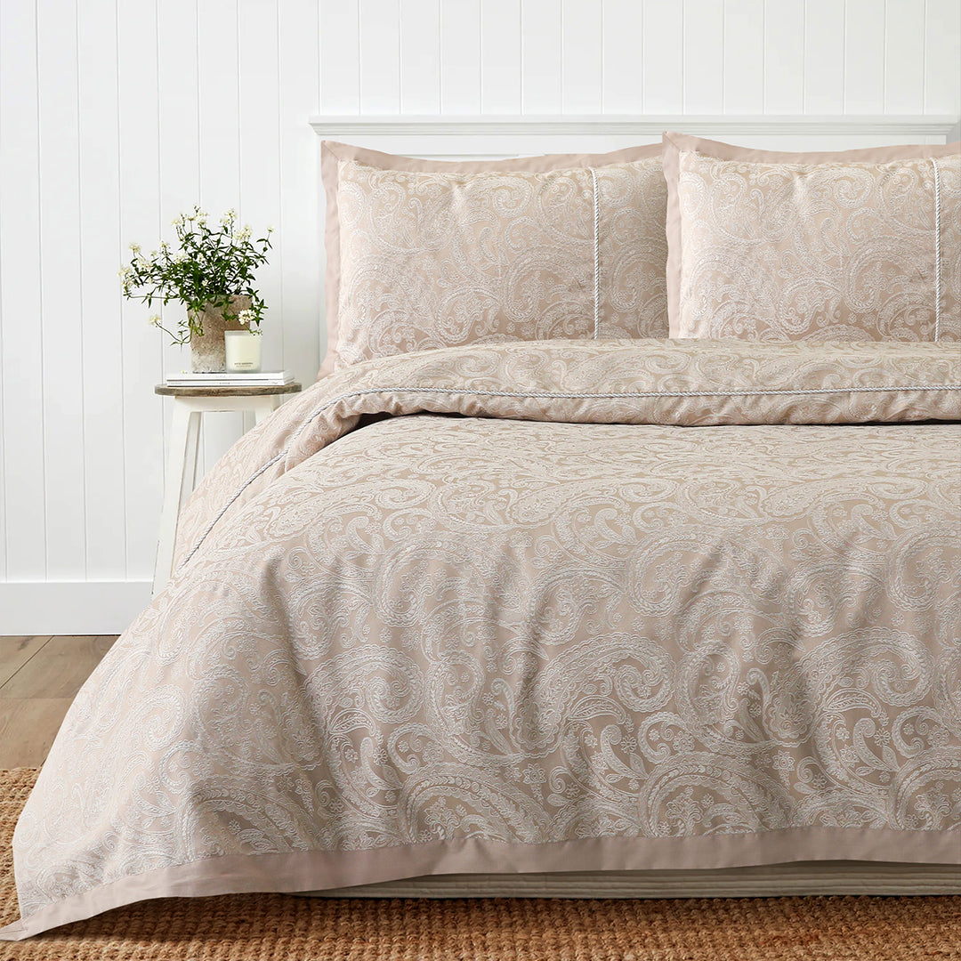 Transform your bedroom into a serene retreat with our beautifully crafted duvet set. Featuring an intricate paisley pattern in soft, neutral tones, this set brings a touch of classic sophistication to any space. Made from premium fabric for a silky-smooth feel and lasting durability, it ensures comfort that looks as good as it feels.
