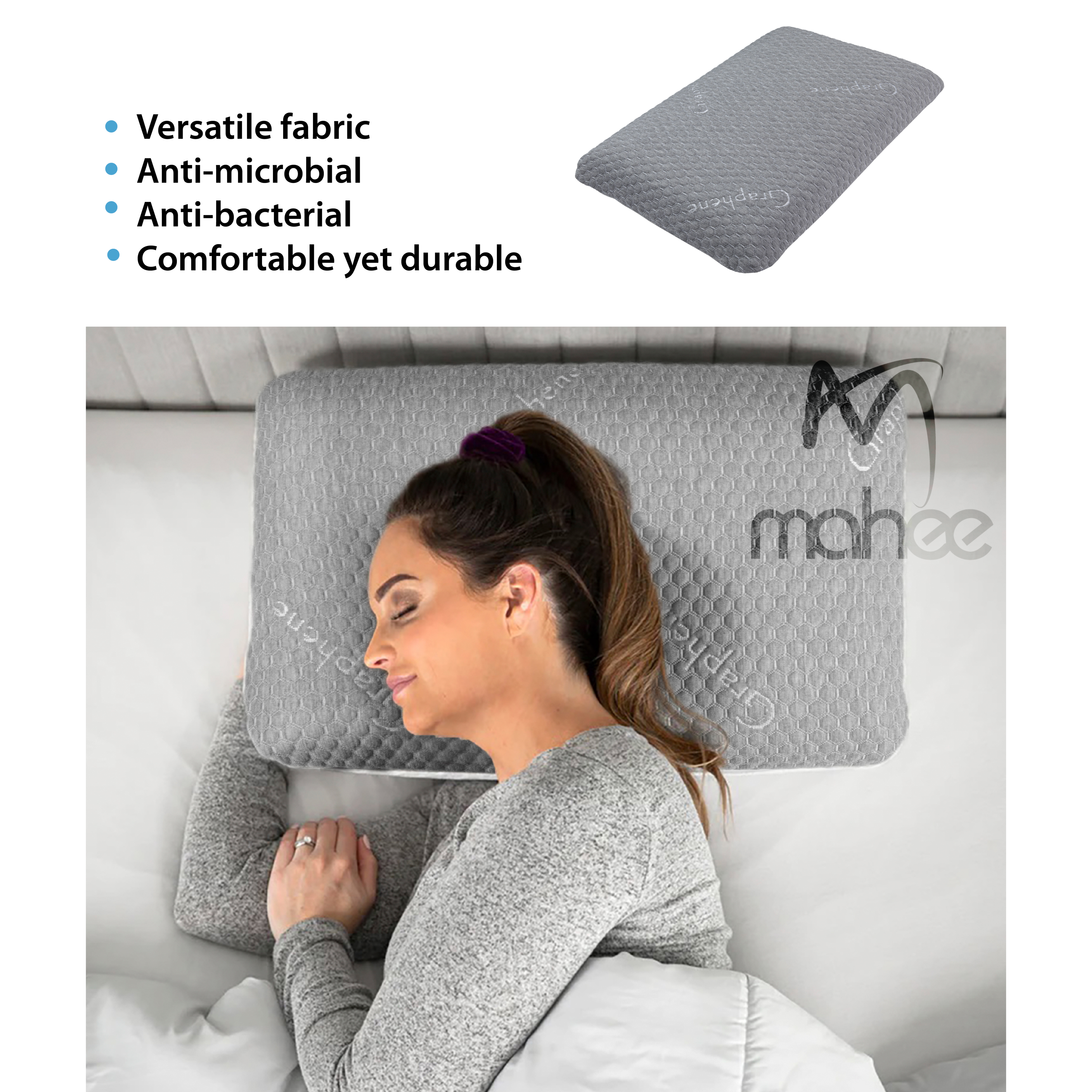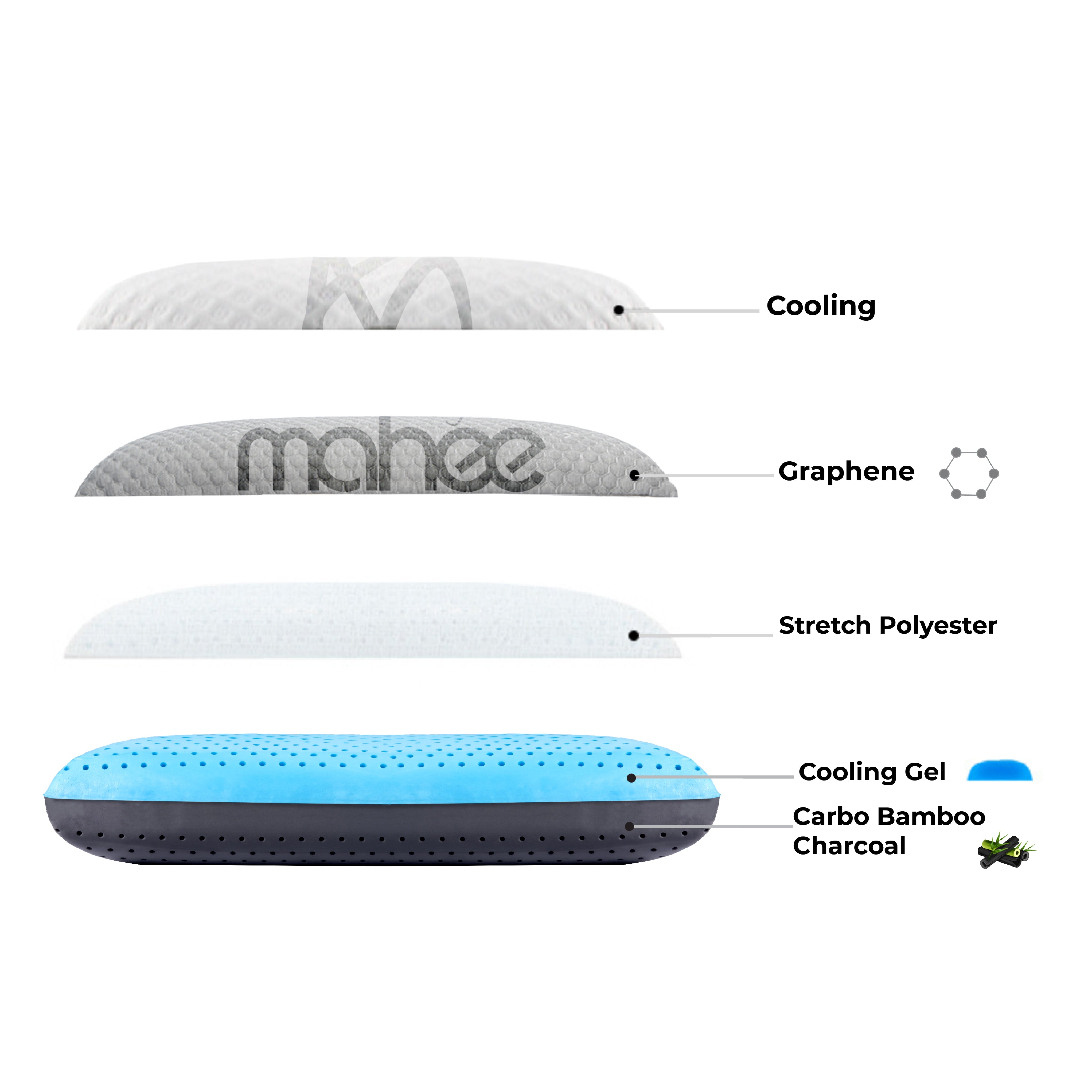 Active-Air Technology that enhances breathability, keeps you cool with increased comfort and is dirt, bacteria, and dust mite resistant. This pillow also utilizes the Dual Memo-Density system that allows you to choose your firmness. With strategic ergonomic design, this pillow promotes Orthopedic Sleeping. It aligns the spine and relieves pain in your head, neck, and shoulders while retaining shape after use. Not only that, this revolutionary pillow also gives you 4 dimensions of comfort: soft memory foam, firm memory foam, CarbonIce, and Graphene. All of these features and more make CarbonIce your solution to better sleep.
