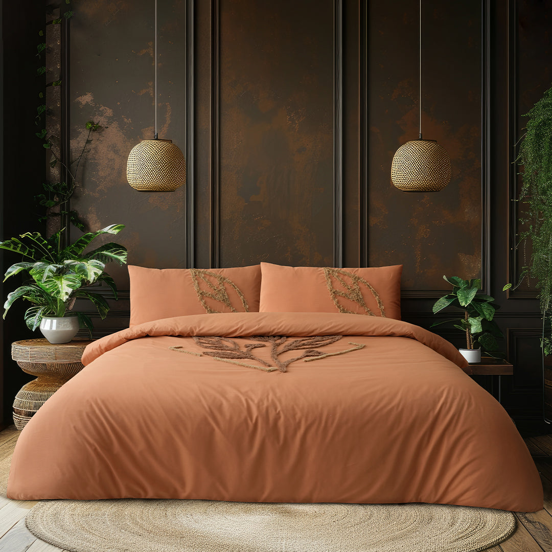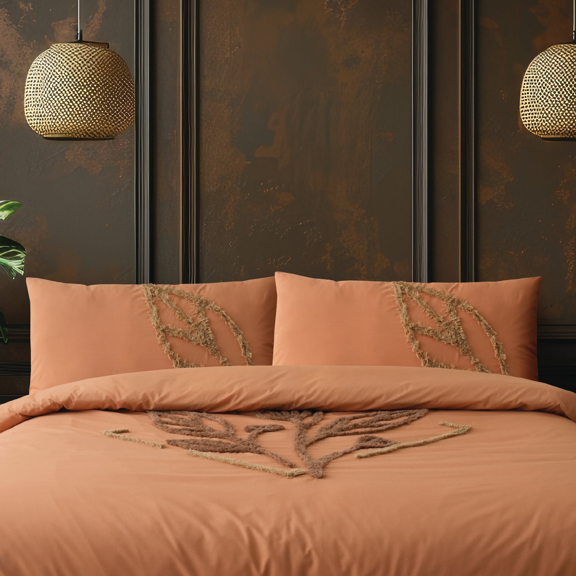 Elevate your bedroom with the warm elegance of our amber rose tufted duvet set. Crafted from soft, breathable fabric, this set features intricately tufted botanical motifs that bring texture and depth to your space. The earthy tone exudes a cozy yet sophisticated vibe, while the detailed design adds an artisanal touch—perfect for creating a modern, nature-inspired retreat.